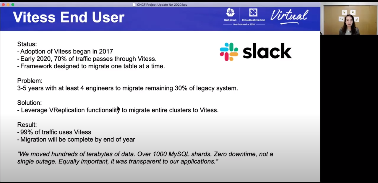 Constance also featured Slack's Vitess migration as an End-User Story.